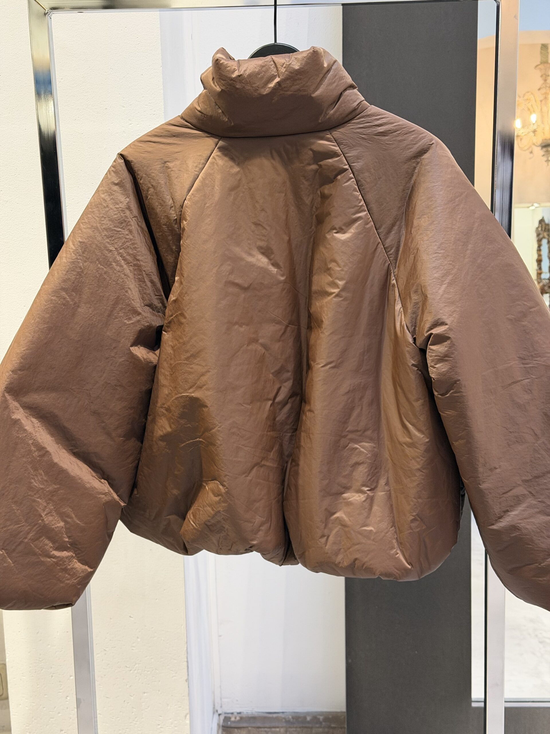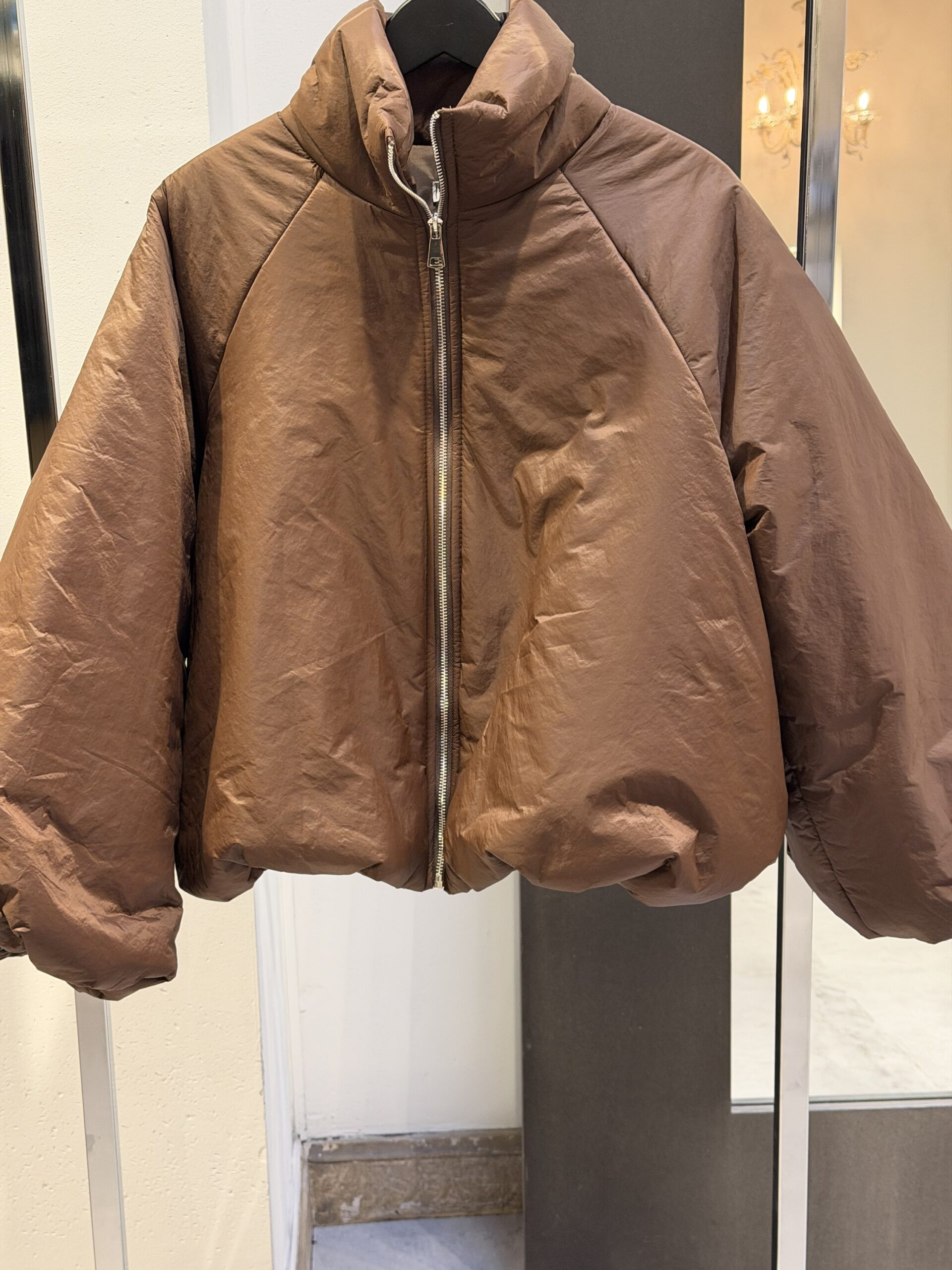 Gedetailleerd met elastiek aan de onderkant waardoor het jasje gepoft valt.