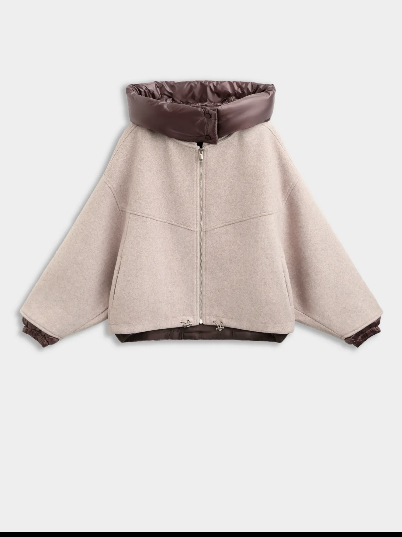 De elastische taille en boorden en manchetten van dons creëren een moderne shape.