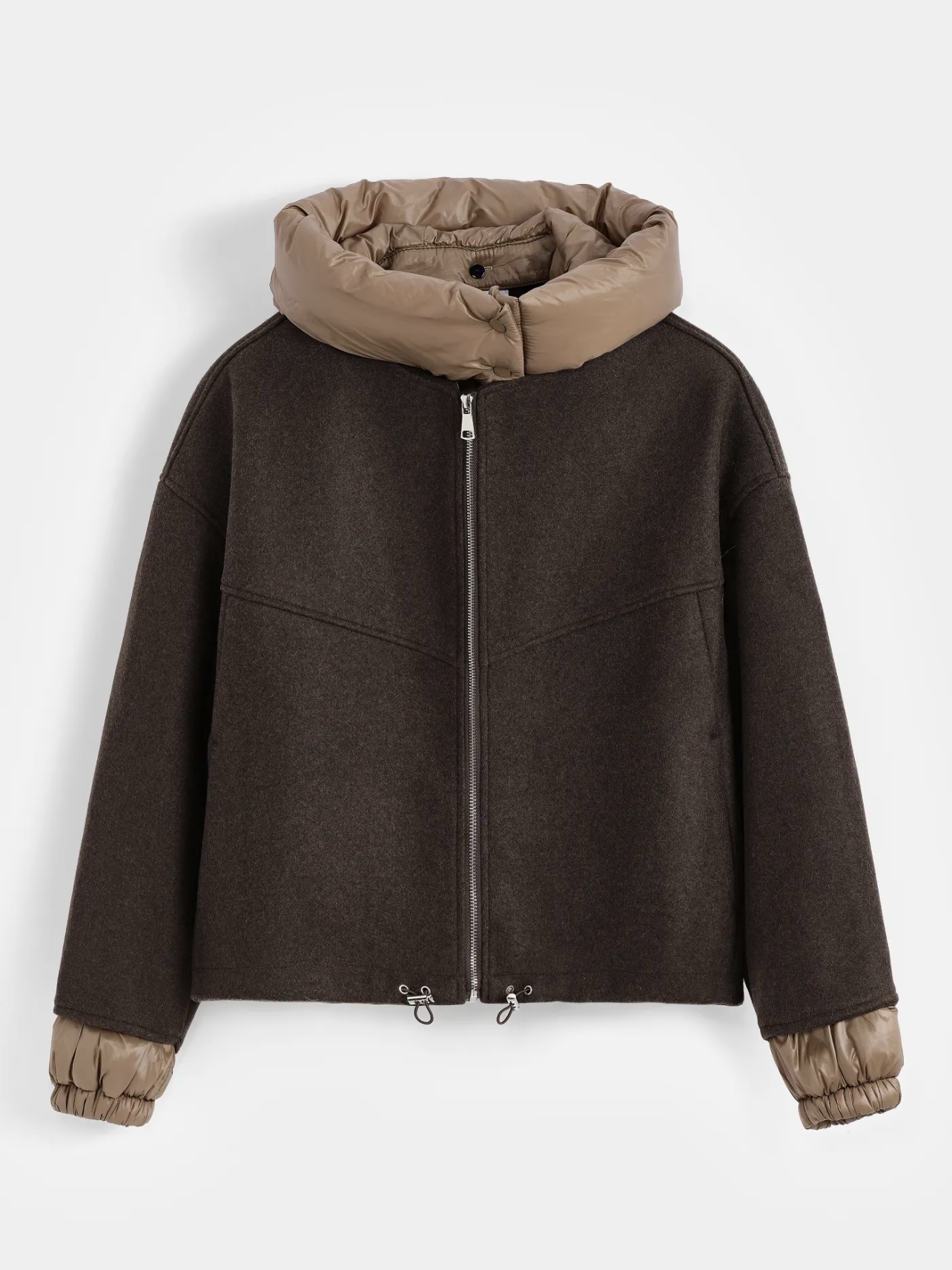 De elastische taille en boorden en manchetten van dons creëren een moderne shape.