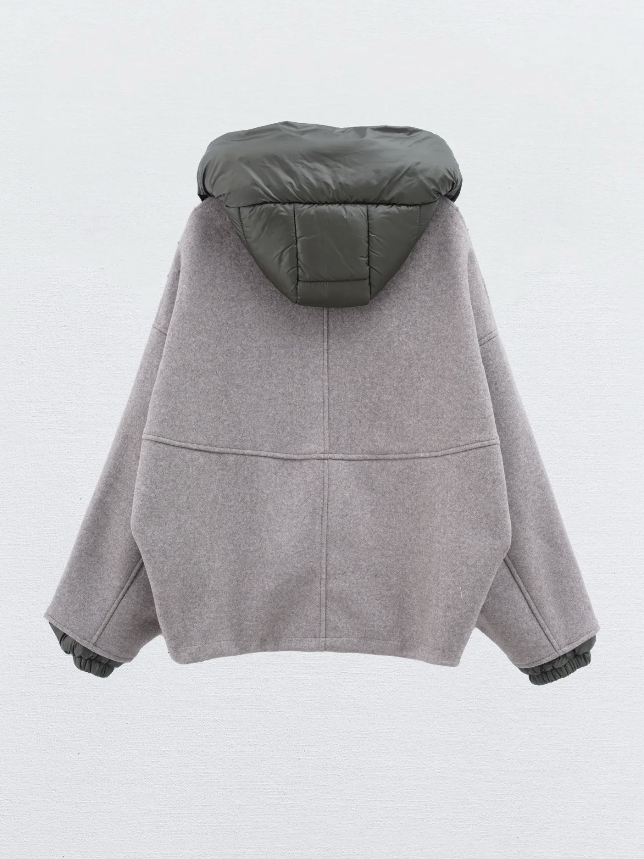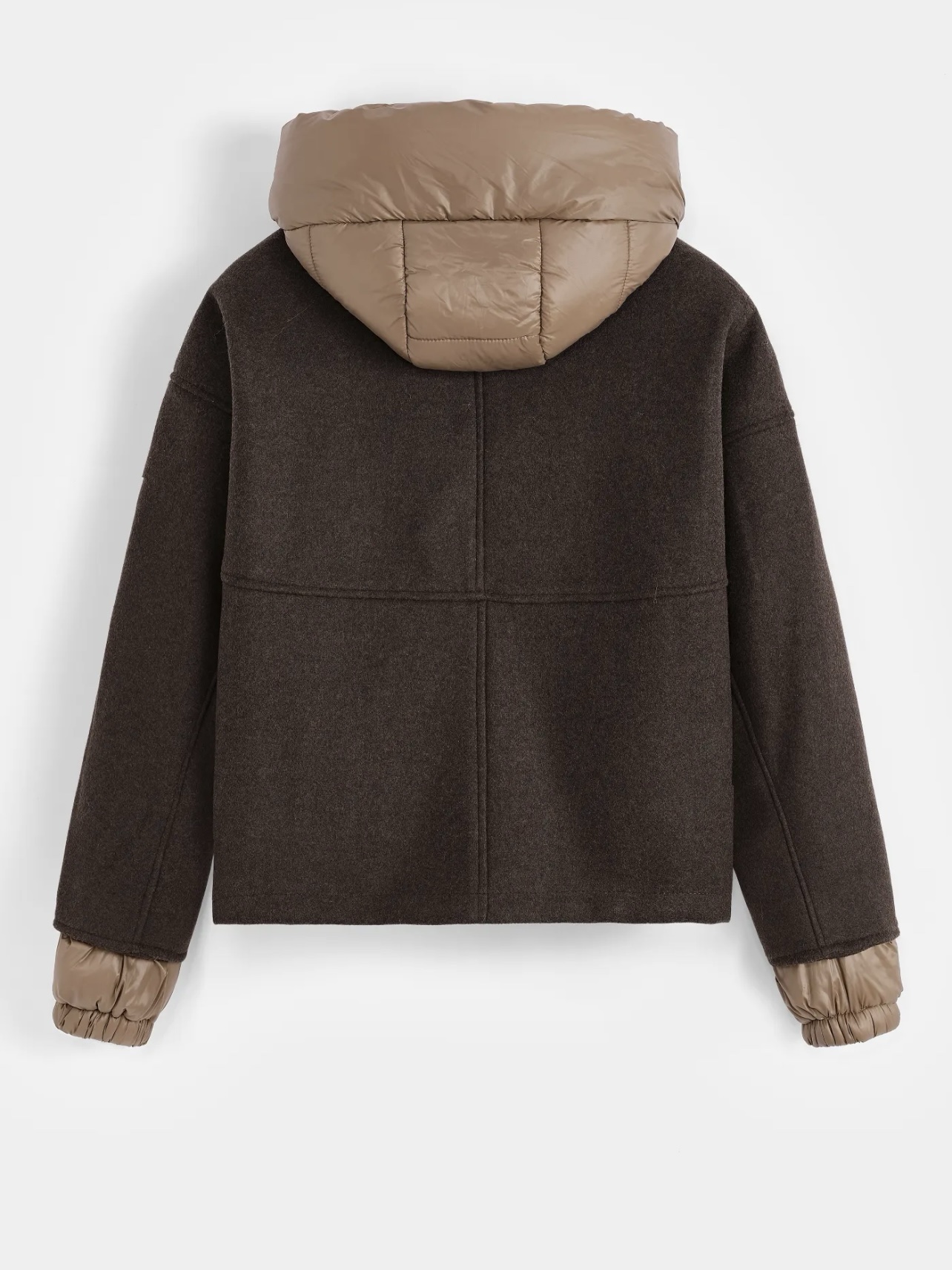 De elastische taille en boorden en manchetten van dons creëren een moderne shape.
