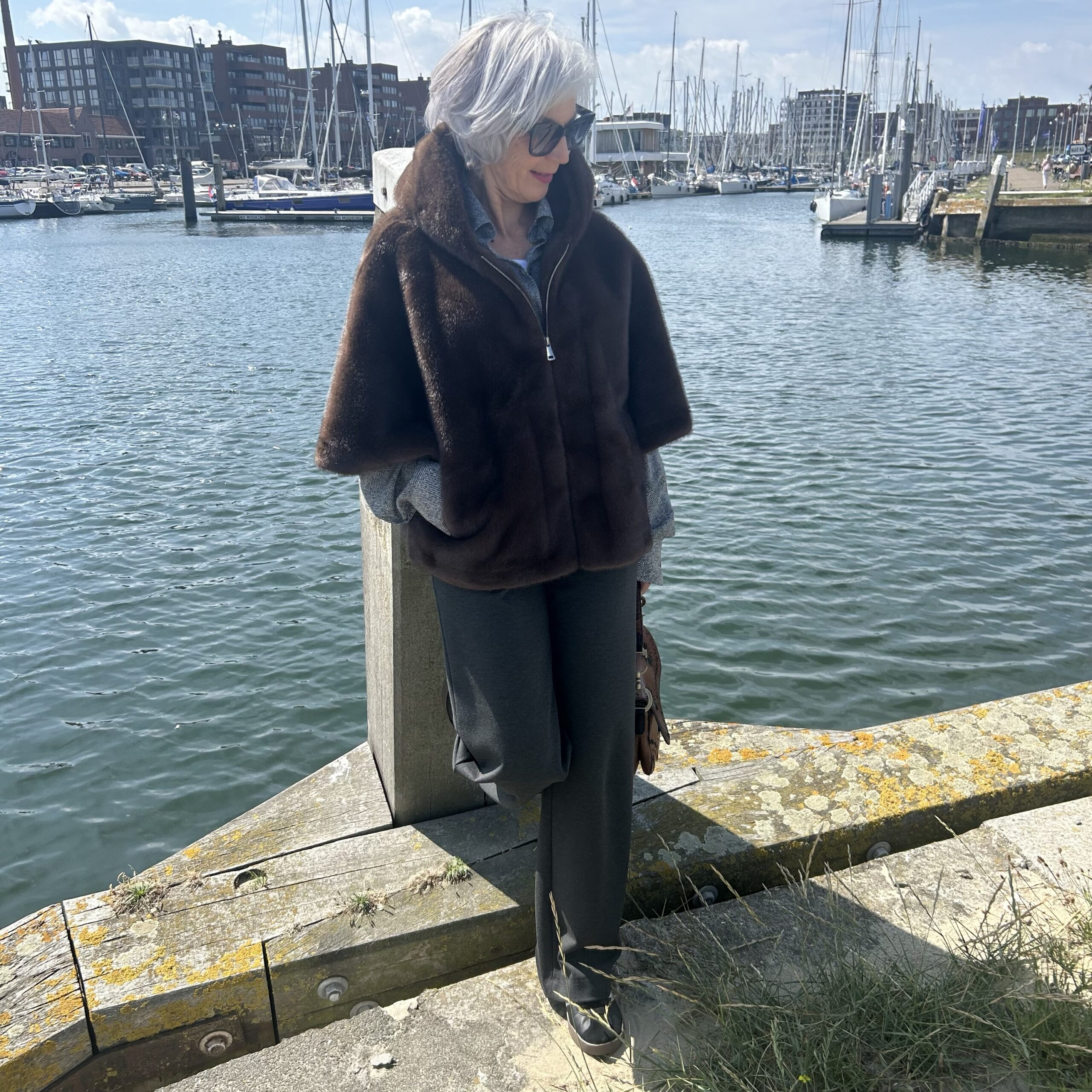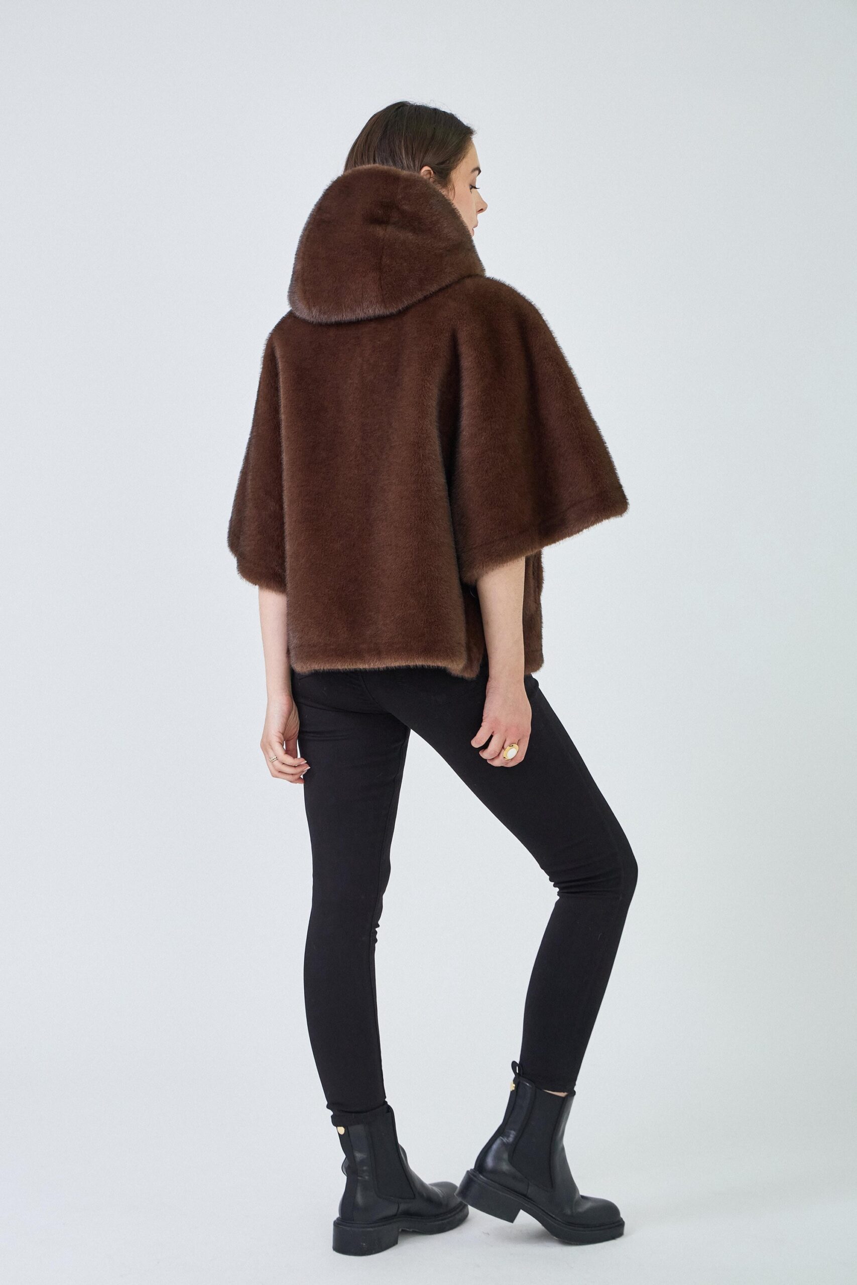 Deze bruine faux fur cape combineert moeiteloos comfort met verfijnde elegantie. Het lichte,zachte materiaal biedt optimale warmte .