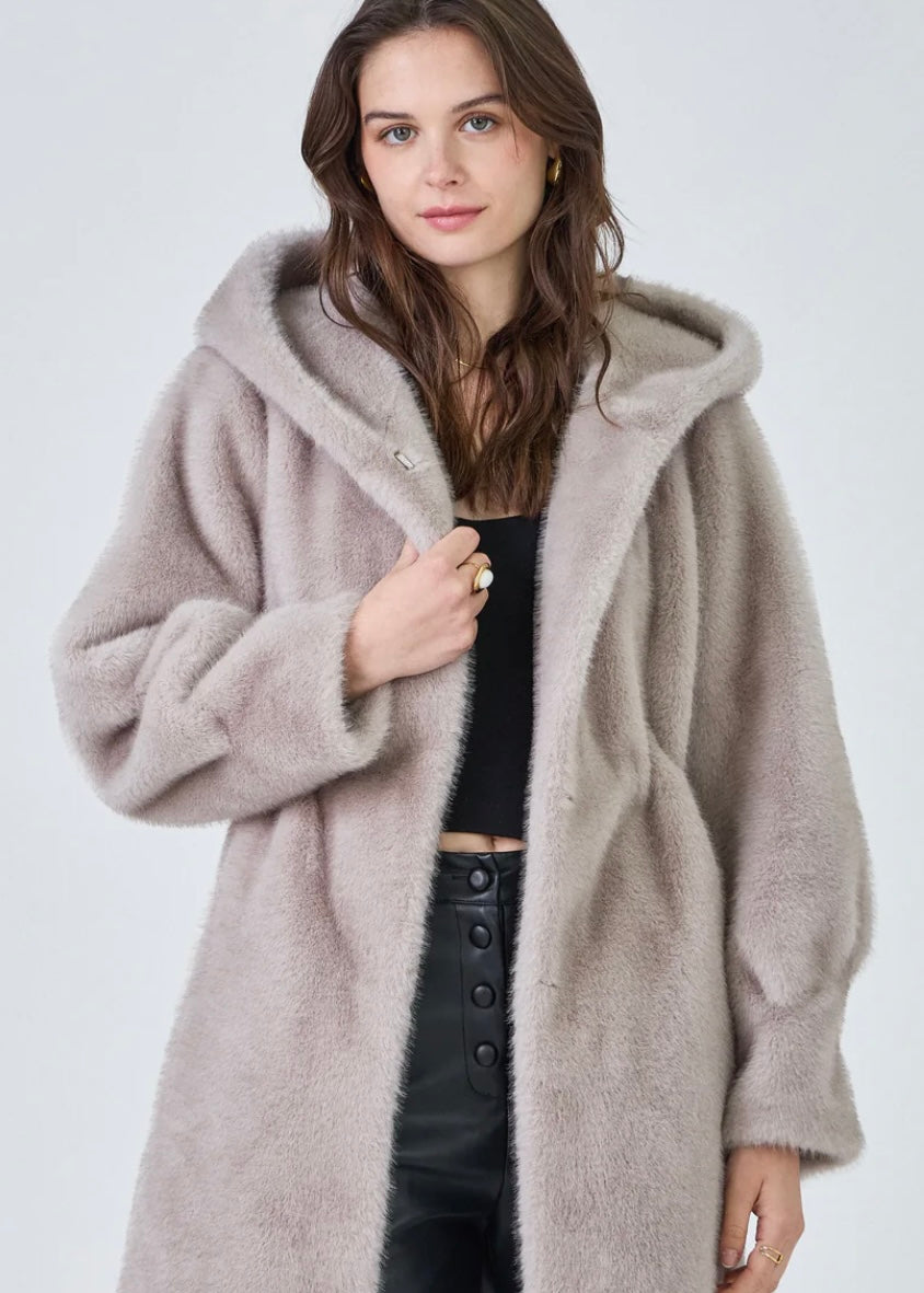 Omhul jezelf met tijdloze elegantie. Deze faux fur parka met capuchon is ontworpen voor de vrouw die comfort én stijl naadloos wil combineren. De rijke faux fur voelt weelderig zacht aan en geeft de jas een high-fashion uitstraling, terwijl de praktische zakken subtiel in het design zijn verwerkt.