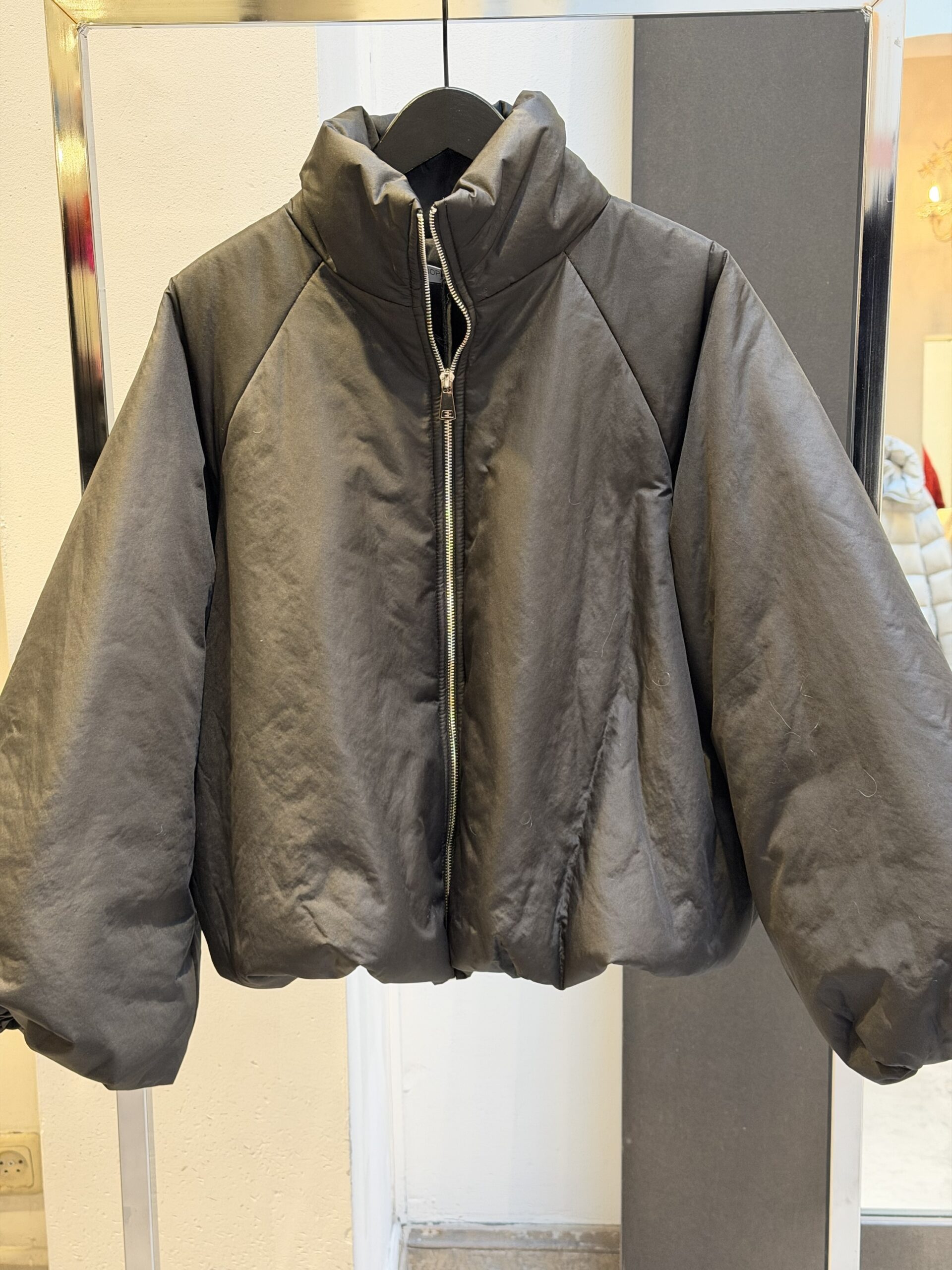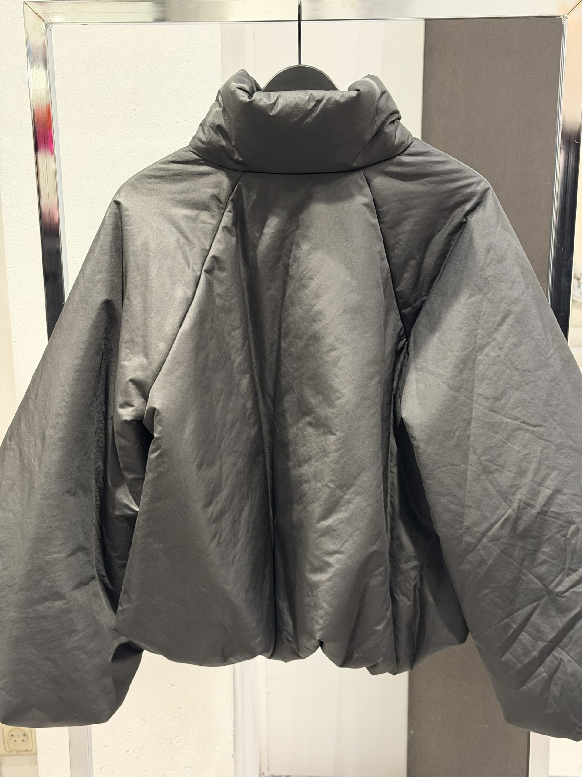 Gedetailleerd met elastiek aan de onderkant waardoor het jasje gepoft valt.